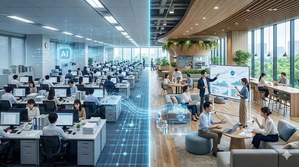 If AI removes the grunt work from professional roles - the research, the routine drafting, the data processing - the remaining workforce is smaller, more expert, more senior, better paid, and likely needs better space. Less total square footage, but higher quality. More collaborative, more client-facing, more premium.